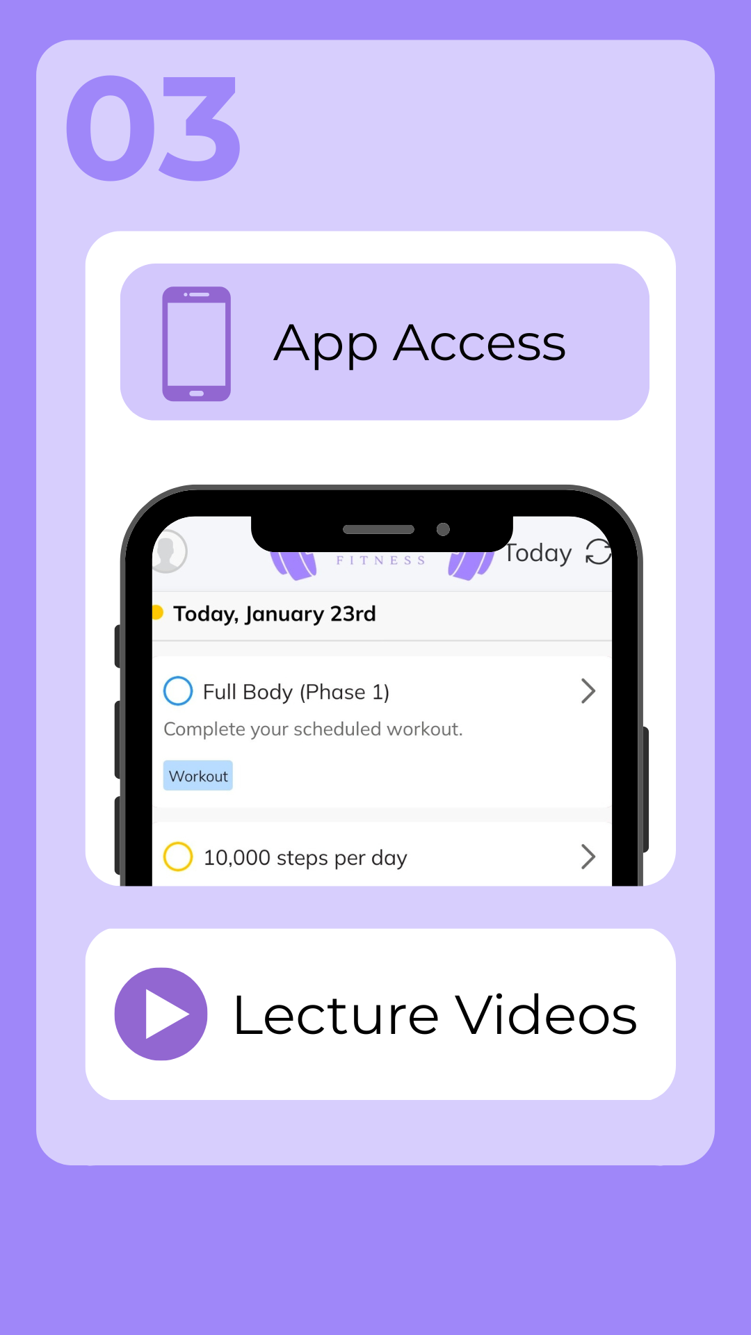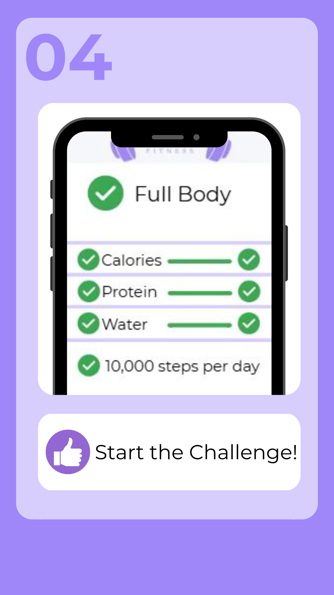Everything will be in my training app. You will find your program and training sessions there, personalised step, calories and protein targets to tick off everyday, alongside educational content, a chat function with myself, and the ability to log and see your progress via photos and scale weight. You can also connect your smart watch and MyFitnessPal account so that the app becomes your central hub for the entire challenge.