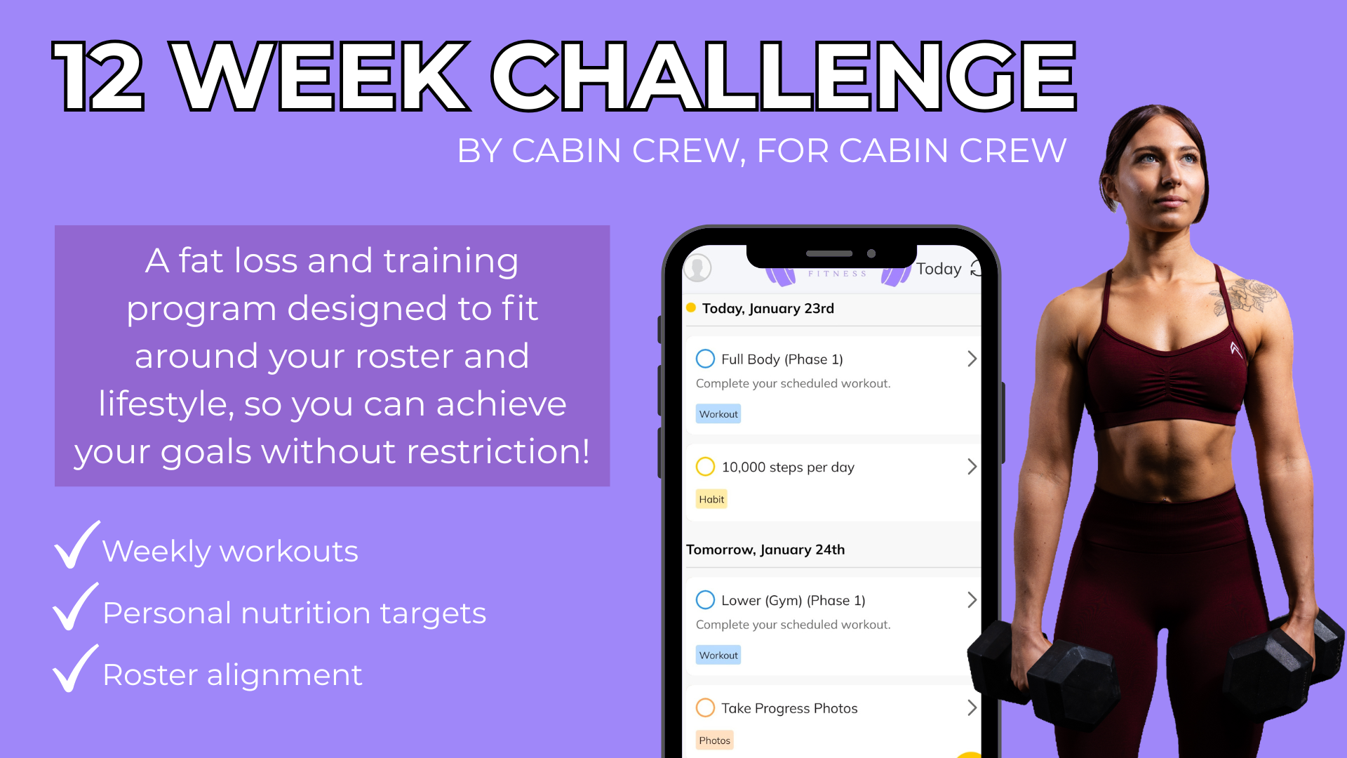 Flying - a cabin crew specific lecture which covers how to bring everything together amongst the lifestyle of the job. From meal prepping, to landing days, to eating onboard and still enjoying crew purch. You get the tools and framework to make fat loss as easy as possible amongst all the uncertainty and disruption to routine that we have as crew.