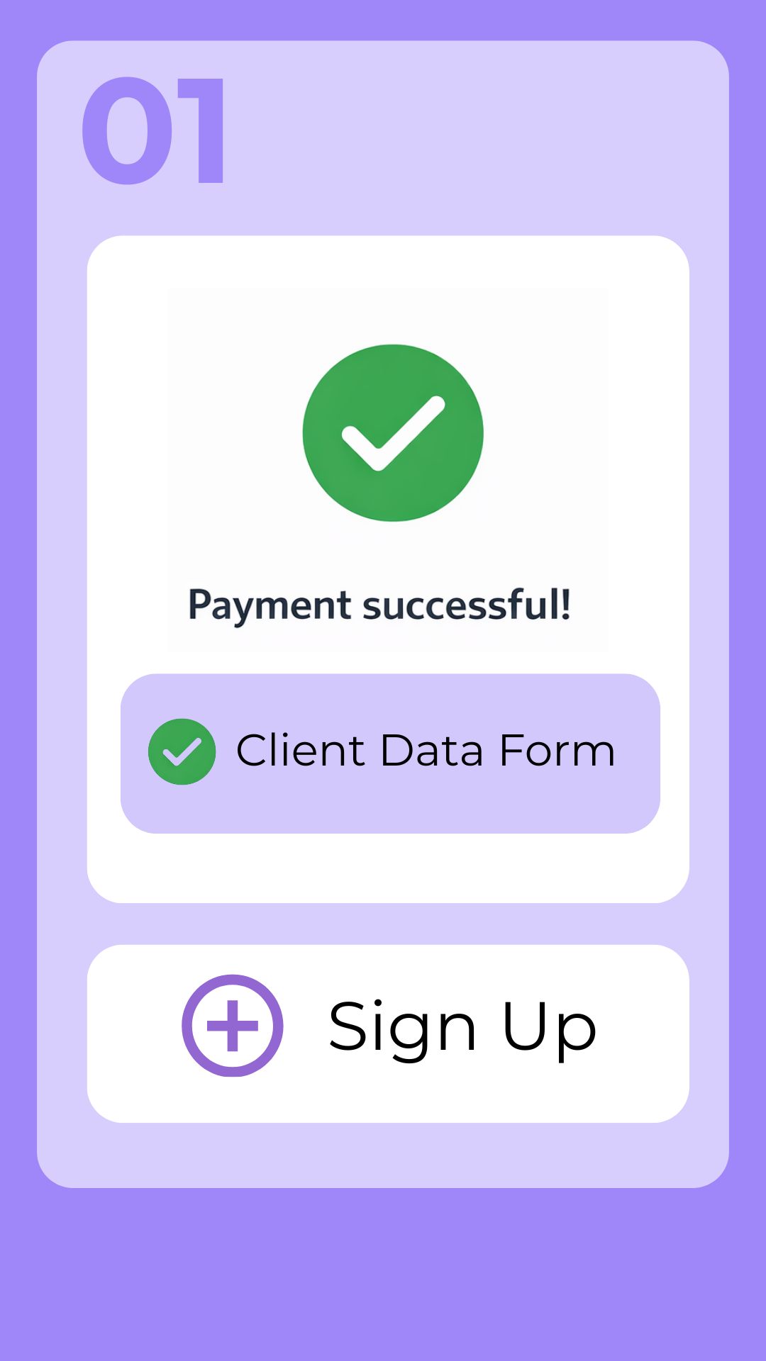 Sign up using the link on this page. Choose from either upfront or 3 monthly payments. Once paid, you will be redirected to a Client Data Form. This must be completed before you can proceed any further